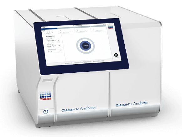 - El analizador QIAstat-Dx y los cartuchos están diseñados como un sistema cerrado que contiene a bordo todos los reactivos necesarios, lo que permite la preparación de muestras sin intervención. Las señales de amplificación en tiempo real detectadas son interpretadas por el software integrado y se informan a través de una interfaz de usuario intuitiva.
